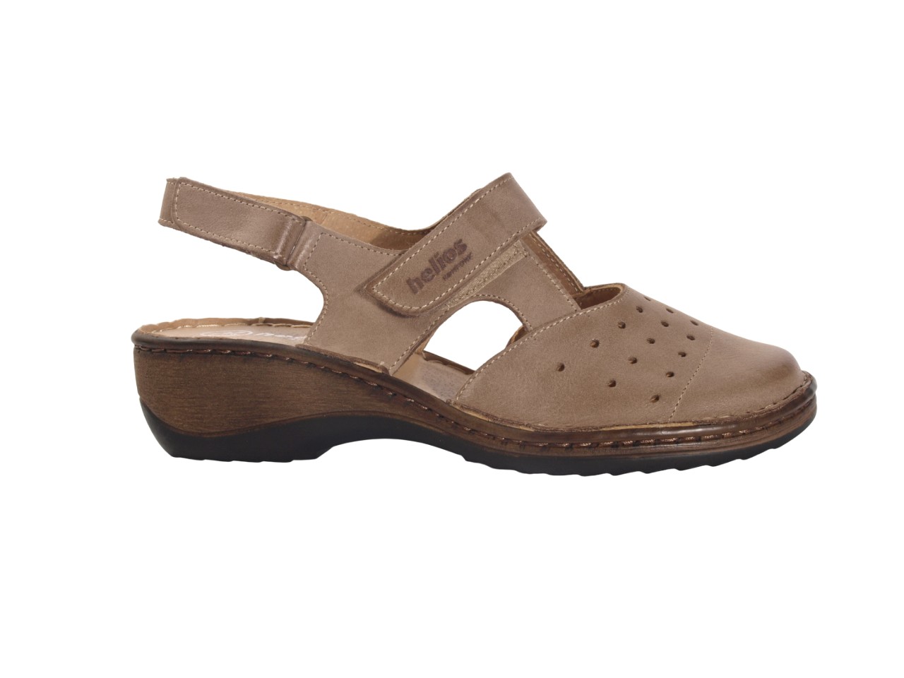 Відкрийте для себе комфорт і стиль з босоніжками жіночими від бренду HELIOS. Ці бежеві босоніжки, виготовлені в Польщі, стануть ідеальним вибором для літнього сезону. Верх і підкладка з натуральної шкіри забезпечують максимальний комфорт і довговічність. Завдяки липучкам на підйомі та п'ятці, ви легко зможете регулювати посадку. Широка кругла форма носка і танкетка додають зручності для повсякденного носіння. Оберіть стиль і комфорт з HELIOS!