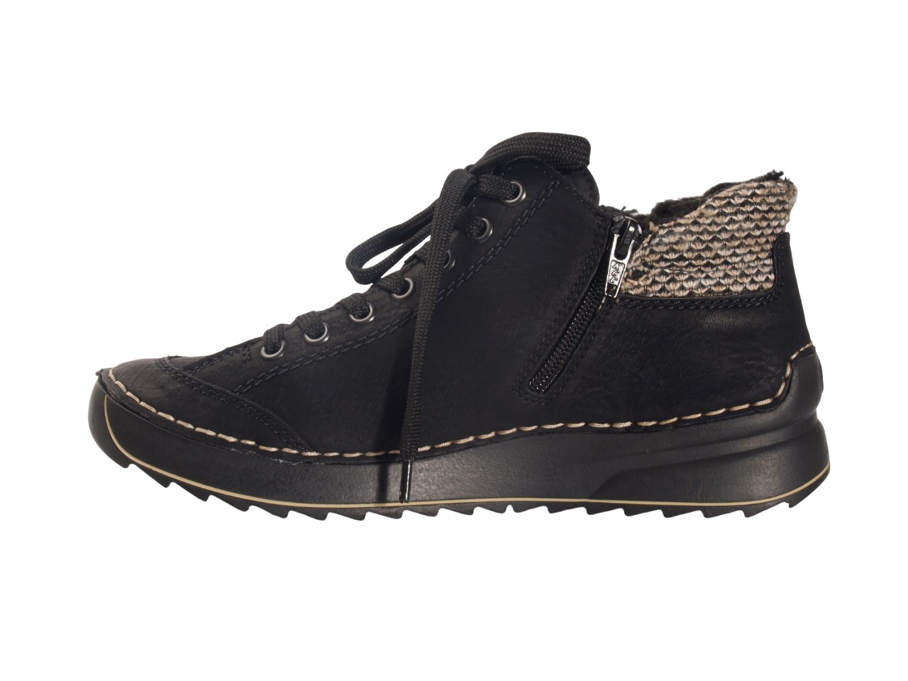 Жіночі черевики RIEKER — ідеальний вибір для зимових прогулянок. Виготовлені з комбінації штучної шкіри та текстилю, вони забезпечують стильний вигляд і комфорт. Чорний колір додає універсальності, а підкладка з шерсті гарантує тепло. Черевики оснащені зручними блискавками та шнурівкою, що дозволяє легко регулювати посадку. Низький хід і підошва з поліуретану забезпечують стабільність і комфорт при ходьбі. Декоративні елементи додають оригінальності, роблячи цю модель чудовим вибором для стильних жінок.