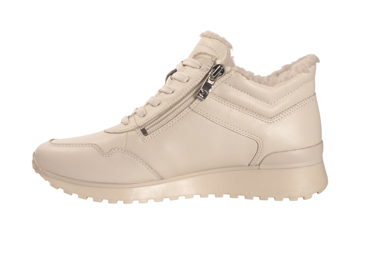 Відчуйте комфорт і стиль з жіночими черевиками CAPRICE! Виготовлені з натуральної шкіри, вони ідеально підходять для зими. Молочний колір, зручна підошва з поліуретану, тепла шерстяна підкладка, блискавка та шнурівка створюють ідеальний образ для повсякденного життя.