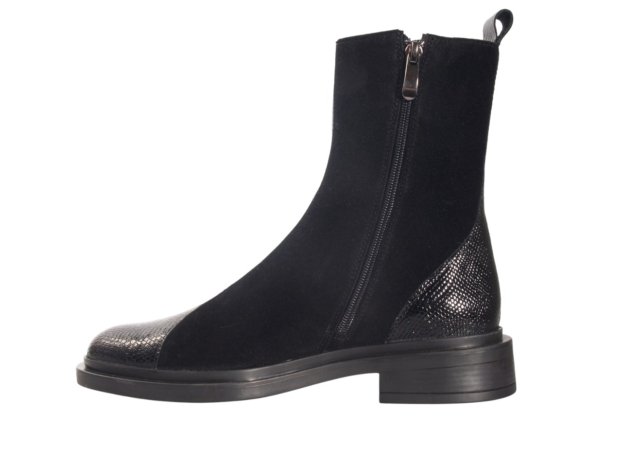 Відкрийте для себе стиль і комфорт з жіночими черевиками CORSO VITO! Натуральна замша та шкіра в поєднанні з текстильною підкладкою створюють ідеальний демісезонний вибір. Чорний колір і низький підбор додають елегантності, а зручна блискавка забезпечує легкість у використанні.