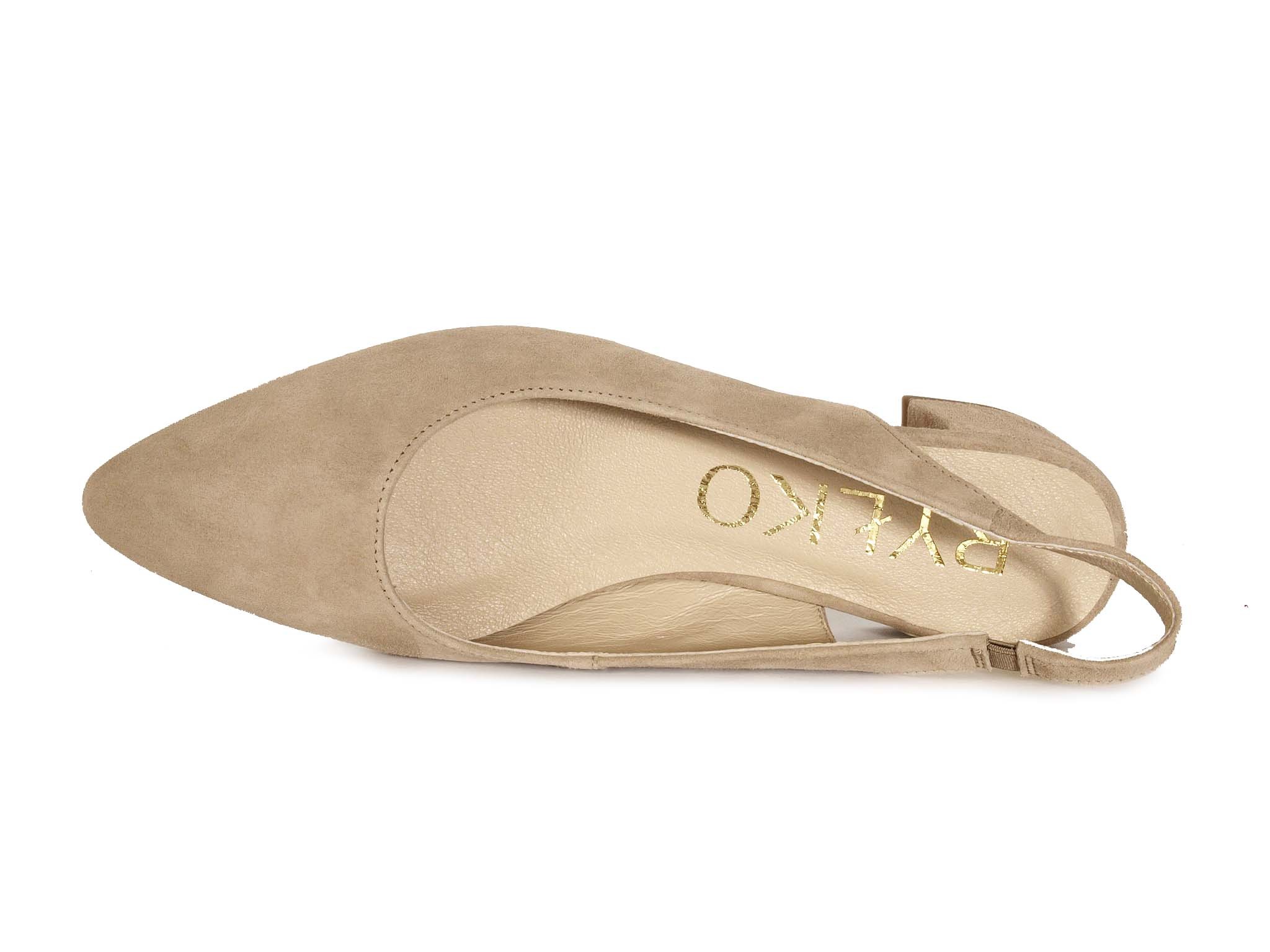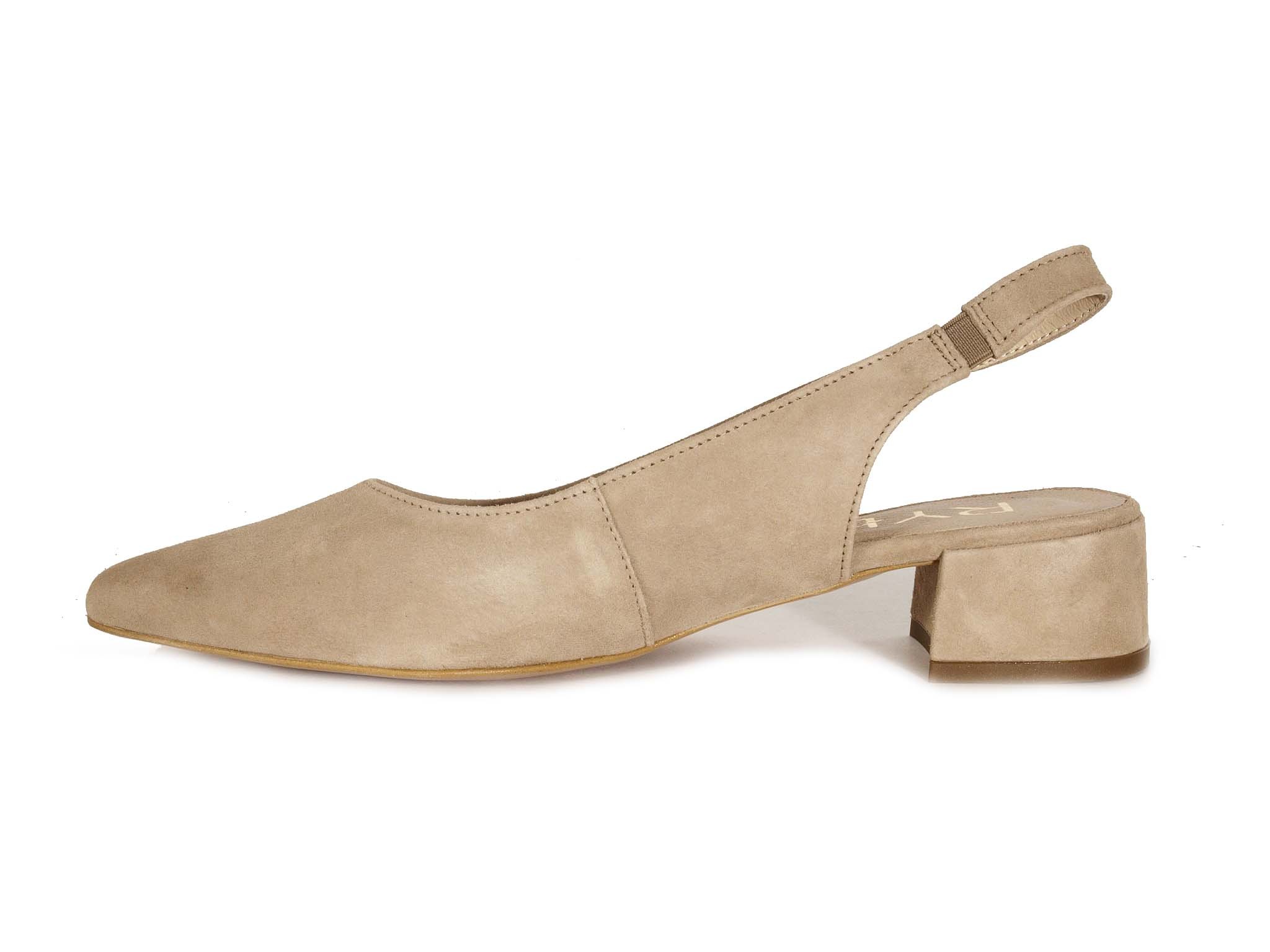 Верх цих слінгбеків виготовлений з натуральної замші, що надає їм розкішного вигляду та забезпечує довговічність. Замша відома своєю здатністю зберігати форму і колір, що робить ці туфлі ідеальними для частого носіння. Бежевий колір додає універсальності, дозволяючи легко поєднувати їх з різними стилями одягу.