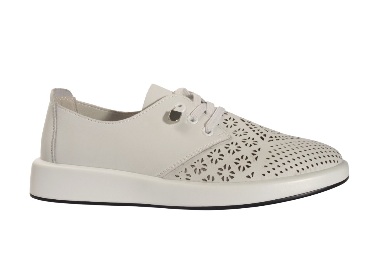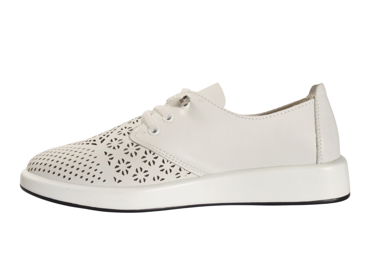 Жіночі шкіряні туфлі WOLLEN RT002-01-06-SK білого кольору на низькому ходу