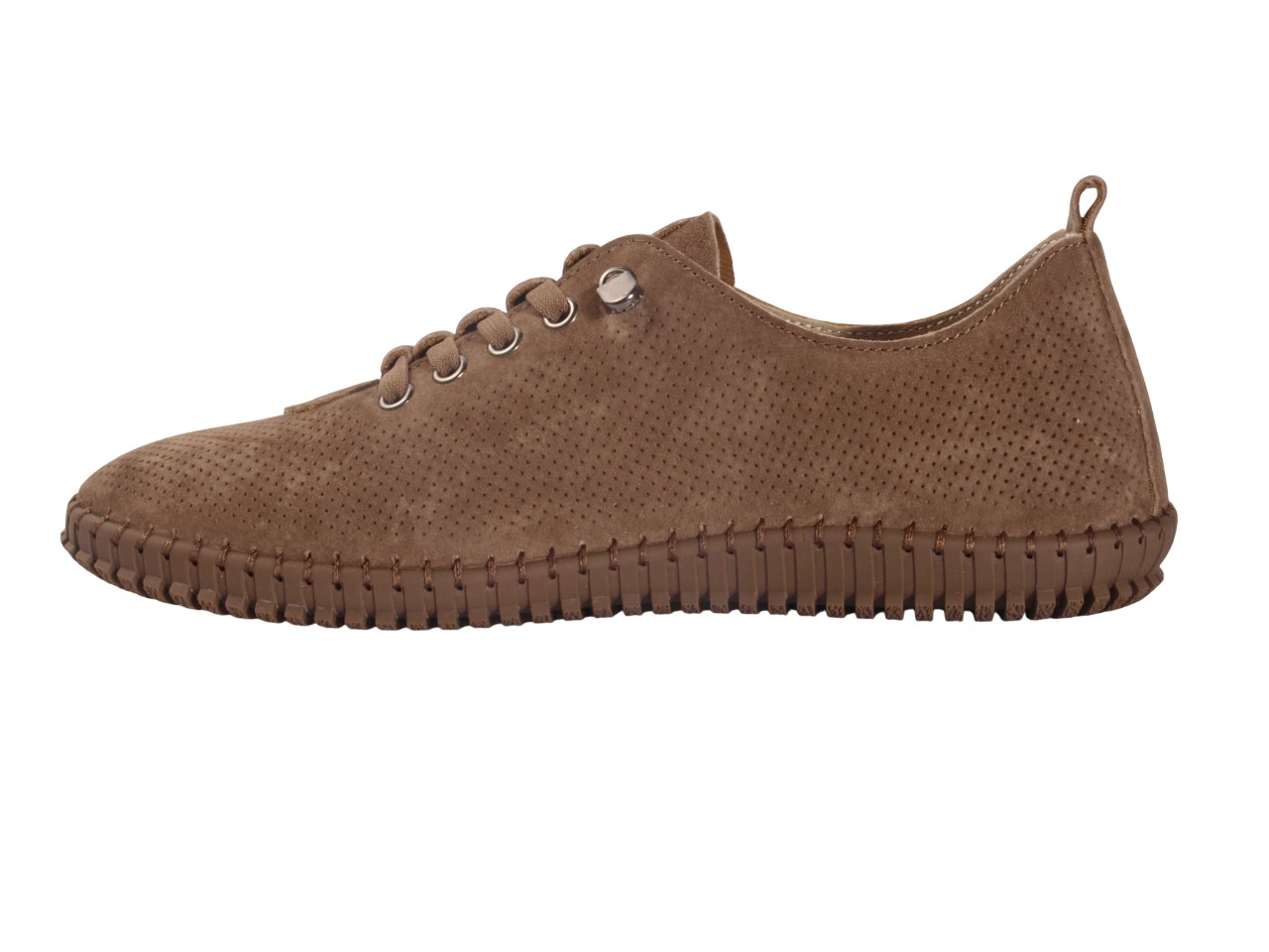 Верх цих туфель виготовлений з натуральної замші, що забезпечує їхню зносостійкість та природну вентиляцію. Замша відома своєю м'якістю та естетичним виглядом, що додає взуттю вишуканості. Натуральна підкладка з шкіри гарантує комфорт протягом усього дня, а зручна колодка робить ці туфлі ідеальними для тривалого носіння. Низький хід підошви забезпечує стійкість та легкість при ходьбі. Шнурівка додає моделі сучасного вигляду та дозволяє регулювати посадку.